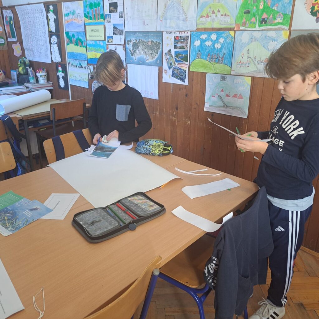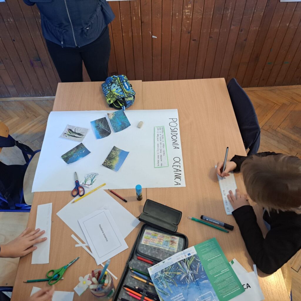 U drugom dijelu radionice, uz pomoć skrivenih tragova, učenici su razvijali timski duh i kreativnost izrađujući plakat o šišmišima i posidoniji – važnim stanovnicima i zaštitnicima našeg morskog i kopnenog ekosustava.